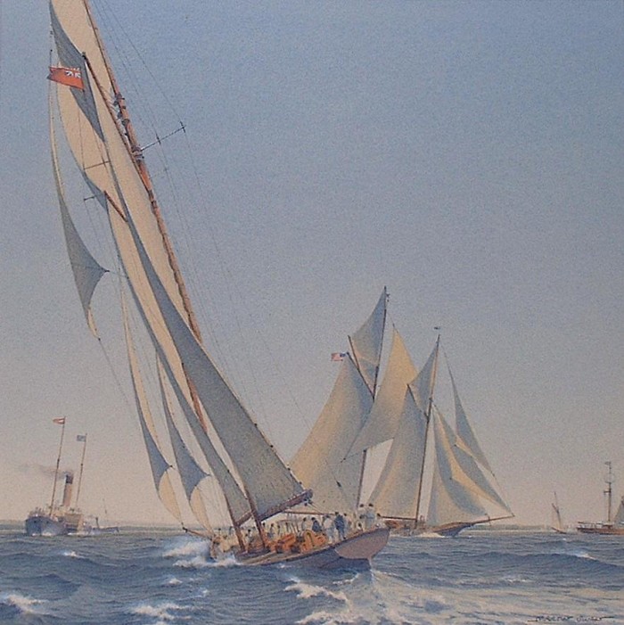 REF : 0 EDITION : 1871 DATE : 18 Oct 1871 - 15:05 COURSE : 2 DESCRIPTION SITE : Columbia leading Livonia to the line. NOTES AMERICA-SCOOP :Il ne peut pas s'agir de la première manche car l'écart était très important. Il s'agit donc de la deuxième manche bien que le parcours avait été mal mouillé, le retour se faisait sur un seul bord au lieu du louvoyage prévu, et la bouée a été atteinte sans aucun virement de bord par les deux bateaux. LICENCE :Autorisation de l'auteur acceptée le 25/04/2019 |