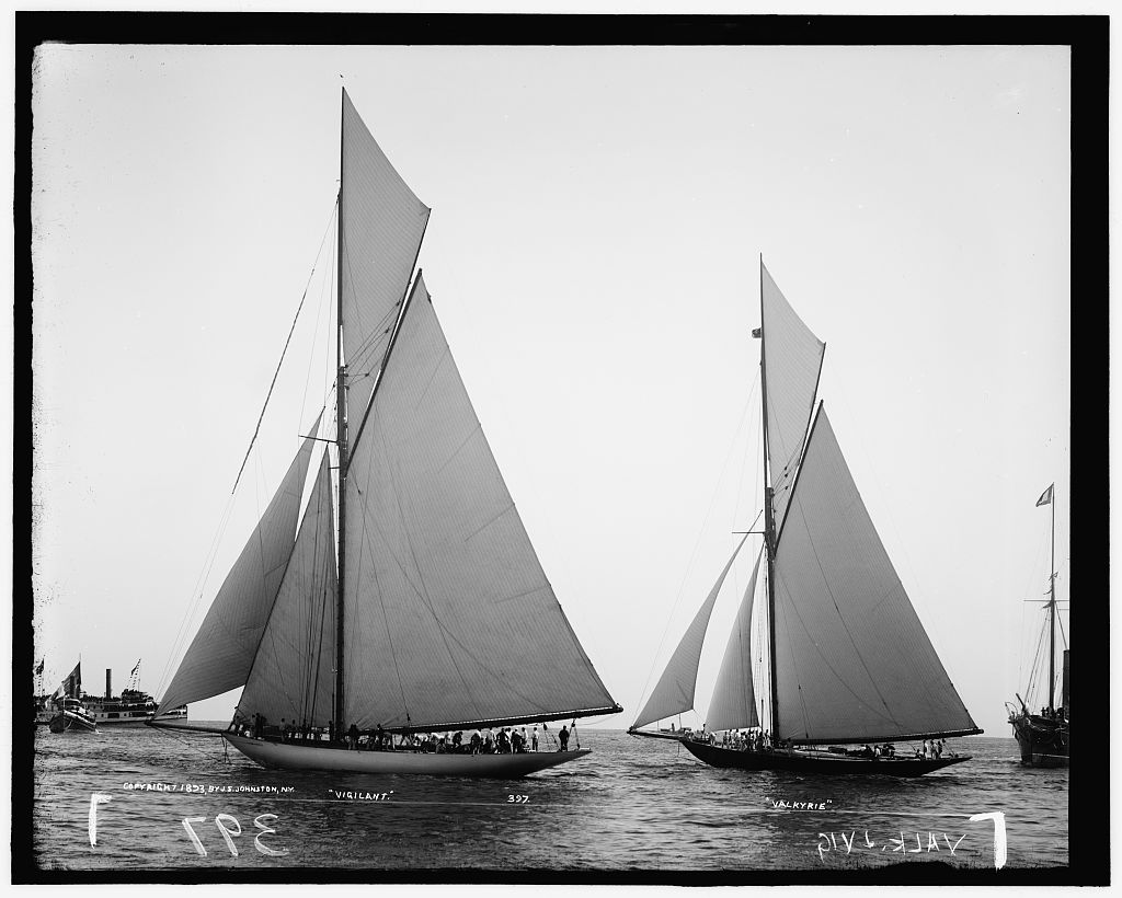 REF : 0 EDITION : 1893 DATE : 09 Oct 1893 - 11:20 COURSE : 3 DESCRIPTION SITE : Vigilant at right. Possibly the America's Cup (1893). LICENCE : Public domain |