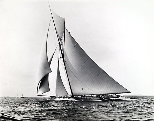 REF : 0 EDITION : 1899 DATE : 1899 COURSE : 0 DESCRIPTION SITE : 8 x 10 gelatin silver print taken by James Burton on Long Island Sound, 1899. Printed by Rosenfeld and Sons, date unknown. Port beam view of the cutter COLUMBIA under sail. Vessel seen on a starboard tack. COLUMBIA was a U.S. America's Cup defender in 1899 and again in 1901. She was designed by N. G. Herreshoff and built at Herreshoff Manufacturing Co., in Bristol, RI 1899. Stamped on back: "NOTICE: This Photograph is sold with the following understanding that it is for YOUR USE ONLY and not to be SYNDICATED or LOANED and that the following CREDIT LINE must be reproduced. Photo MORRIS ROSENFELD, N.Y.". Handwritten on back: "Columbia 1899". Embossed in lower right corner: "MORRIS ROSENFELD N.Y." NOTES AMERICA-SCOOP :LICENCE : Public domain |