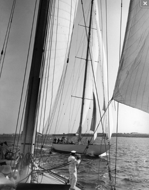 REF : 0 EDITION : 1934 DATE : COURSE : 0 DESCRIPTION SITE : A photograph from the Edwin Levick Collection showing an image of the Endeavour taken from the deck of a rival sailing yacht. The Endeavour was first launched in 1934 in order to compete in the 32nd America's Cup Race. NOTES AMERICA-SCOOP :LICENCE : Public domain |