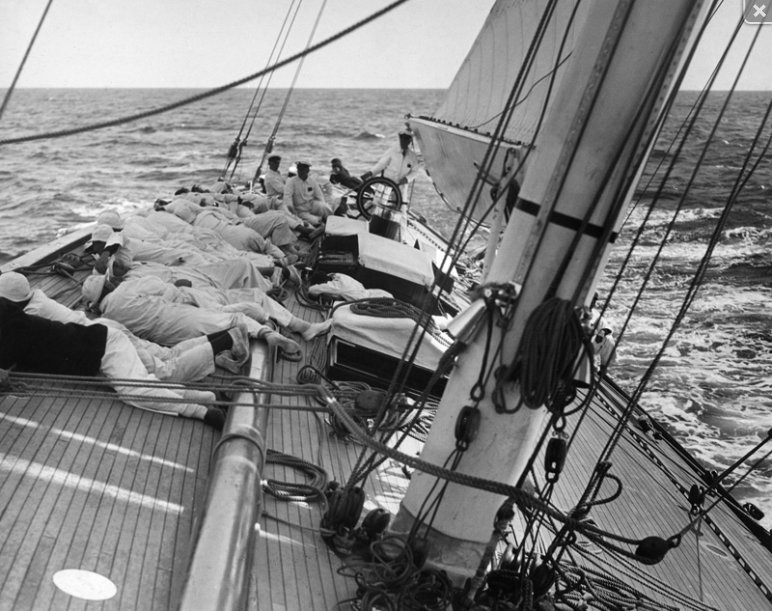 REF : 0 EDITION : 1934 DATE : COURSE : 0 DESCRIPTION SITE : A photograph from the Edwin Levick Collection showing a deck scene of the Endeavour during an America's Cup Race. NOTES AMERICA-SCOOP :LICENCE : Public domain |