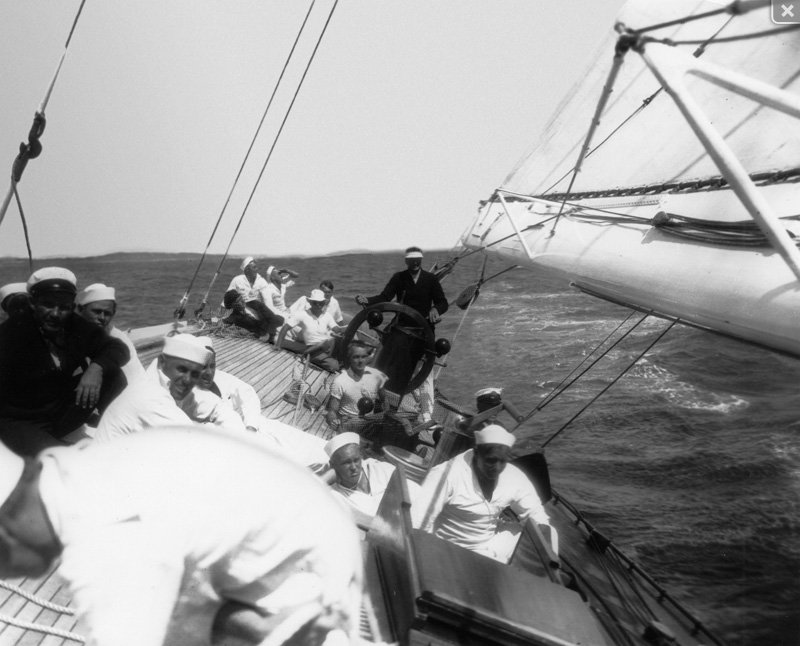 REF : 0 EDITION : 1934 DATE : COURSE : 0 DESCRIPTION SITE : Owner, Harold Vanderbilt, is at the wheel of his racing yacht, Rainbow. The vessel was a successful defender during the 1934 America's Cup races. From the Edwin Levick Collection NOTES AMERICA-SCOOP :LICENCE : Public domain |
