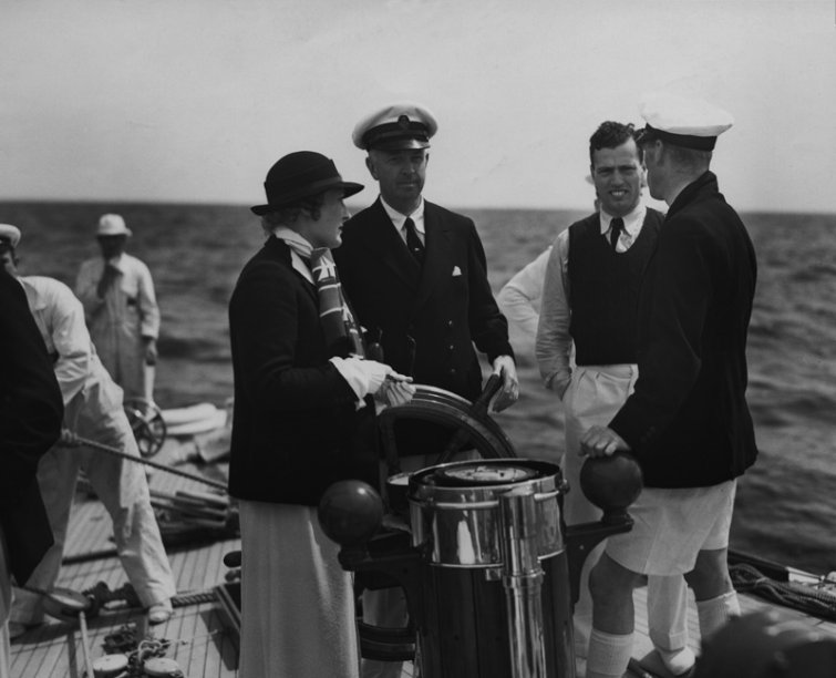 REF : 0 EDITION : 1937 DATE : 1937 COURSE : 0 DESCRIPTION SITE : Mr. and Mrs. T.O.M Sopwith, owners of Endeavour II, are aboard the yacht with Frank Murdoch. Murdoch helped to design the rigging and engineer and more technologically advanced competitor from the 1934 America's Cup challenger Endeavour. Unfortunately for Mr. Sopwith, the 1937 challenger, Endeavour II, would not be successful in her battle for the Cup either. LICENCE : Public domain |