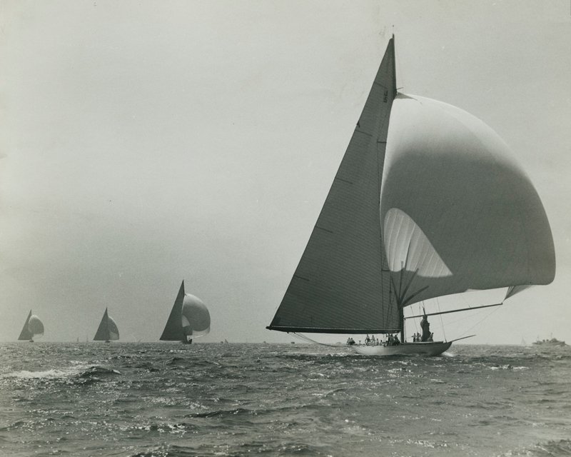 REF : 0 EDITION : 1937 DATE : 17 Aug 1937 COURSE : 0 DESCRIPTION SITE : America's Cup race. Ranger J5 in foreground. She is leading the 127'5" W. Starling Burgess designed, Herreshoff built J class sloop RAINBOW that was built 1934 in Bristol, Rhode Island. The next vessel is the 130' Charles E. Nicholson designed, Camper & Nicholson Yard built J class cutter ENDEAVOUR built 1934 in Gosport, England. Next is the 128'5" Camper & Nicholson J class sloop ENDEAVOUR II, built 1936 in Gosport, England and last the 126' Paine, Belknap & Skene designed, George Lawley & Son Corporation built J Class sloop YANKEE, built 1930 in Neponset, Massachusetts. NOTES AMERICA-SCOOP :LICENCE : Public domain |