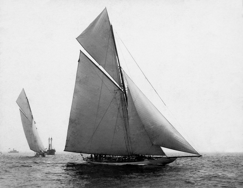 REF : 0 EDITION : 1899 DATE : COURSE : 0 DESCRIPTION SITE : A photograph from the Edwin Levick Collection, taken by John S. Johnston (1839- 1899), showing the Shamrock and Columbia during an early America's Cup race. NOTES AMERICA-SCOOP :LICENCE : Public domain |