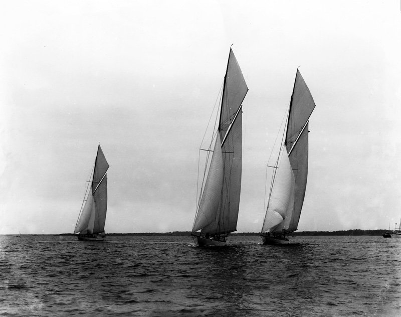REF : 0 EDITION : 1903 DATE : COURSE : 0 DESCRIPTION SITE : A photograph from the Edwin Levick Collection, taken by August Loeffler (1864-1942), showing Columbia, Reliance, and Constitution. All three were potential defenders for the 1903 America's Cup; however, being that Reliance was lighter and faster, she earned the opportunity to compete. NOTES AMERICA-SCOOP :LICENCE : Public domain |