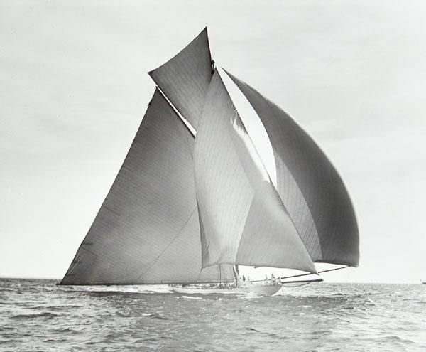 | Document No 1286: DEFENDER, bow view with spinnaker set sailing on Block Island Sound, 1899 | |||||||||||||||