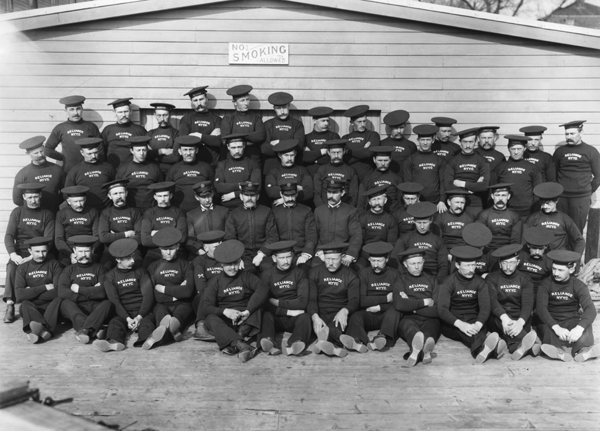 REF : 0 EDITION : 1903 DATE : 1903 COURSE : 0 DESCRIPTION SITE : 8x10 in. glass negative photographed by James Burton in 1903. Image is a formal posed shot of the crew and officers of the 144' cutter, RELIANCE (DS: N. G. Herreshoff; BU: Herreshoff, 1903). Handwritten neg. sleeve info.: "672 / 1903 / Crew of Reliance / Box 42." Handwritten on neg. in margin, "Copyright-1903 / Reliance / 672." CREDIT LINE: Mystic Seaport, Rosenfeld Collection, James Burton photographer. NOTES AMERICA-SCOOP :LICENCE : Public domain |