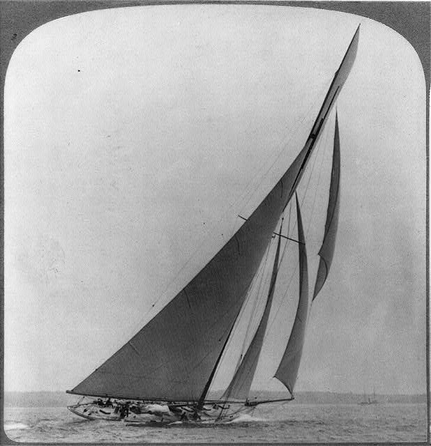 The RELIANCE, America's Cup Defender (1903), heeling under a stiff wind