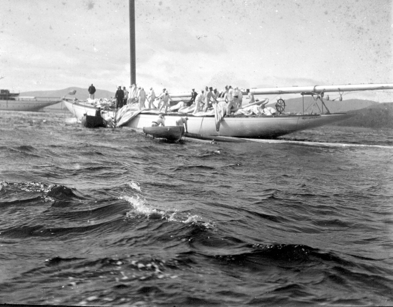 | Document No 1649: Crew on Shamrock with mast down. | |||||||||||||||
