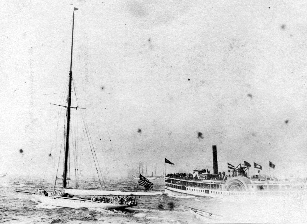 | Document No 1738: Reliance being towed to the hook after winning the first race. | |||||||||||||||
