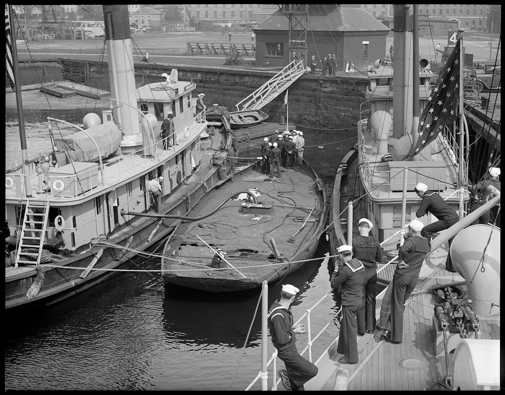 REF : 0 EDITION : 1881 DATE : 26 May 1929 - 03:00 COURSE : 0 DESCRIPTION SITE : Title and date from information provided by Leslie Jones or the Boston Public Library on the negative or negative sleeve. NOTES AMERICA-SCOOP :The end of a QueenConcerned by her impending fate, Boston yachtmen