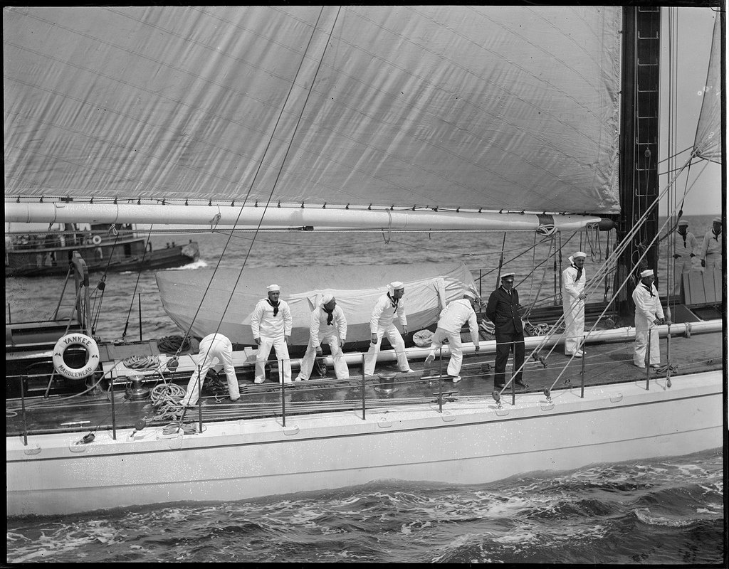 REF : 806013119 EDITION : 1934 DATE : 25 Apr 1935 COURSE : 0 DESCRIPTION SITE : NOTES AMERICA-SCOOP : On April 25, 1935, Yankee sailed to England, racing Lambert's schooner Atlantic and winning by 17 hours. She raced in England against the British Class J yachts Endeavour, Velsheda, Candida, Astra and Shamrock V. She took eight first-place finishes in 32 races. Of the American Js, Yankee was the only one to sail in British waters. LICENCE :Autorisation en cours |