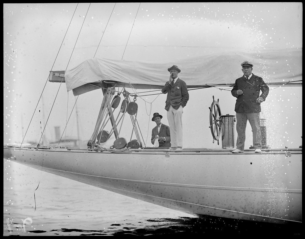 Mr. Nichols, center, aboard cup defender Weetamoe