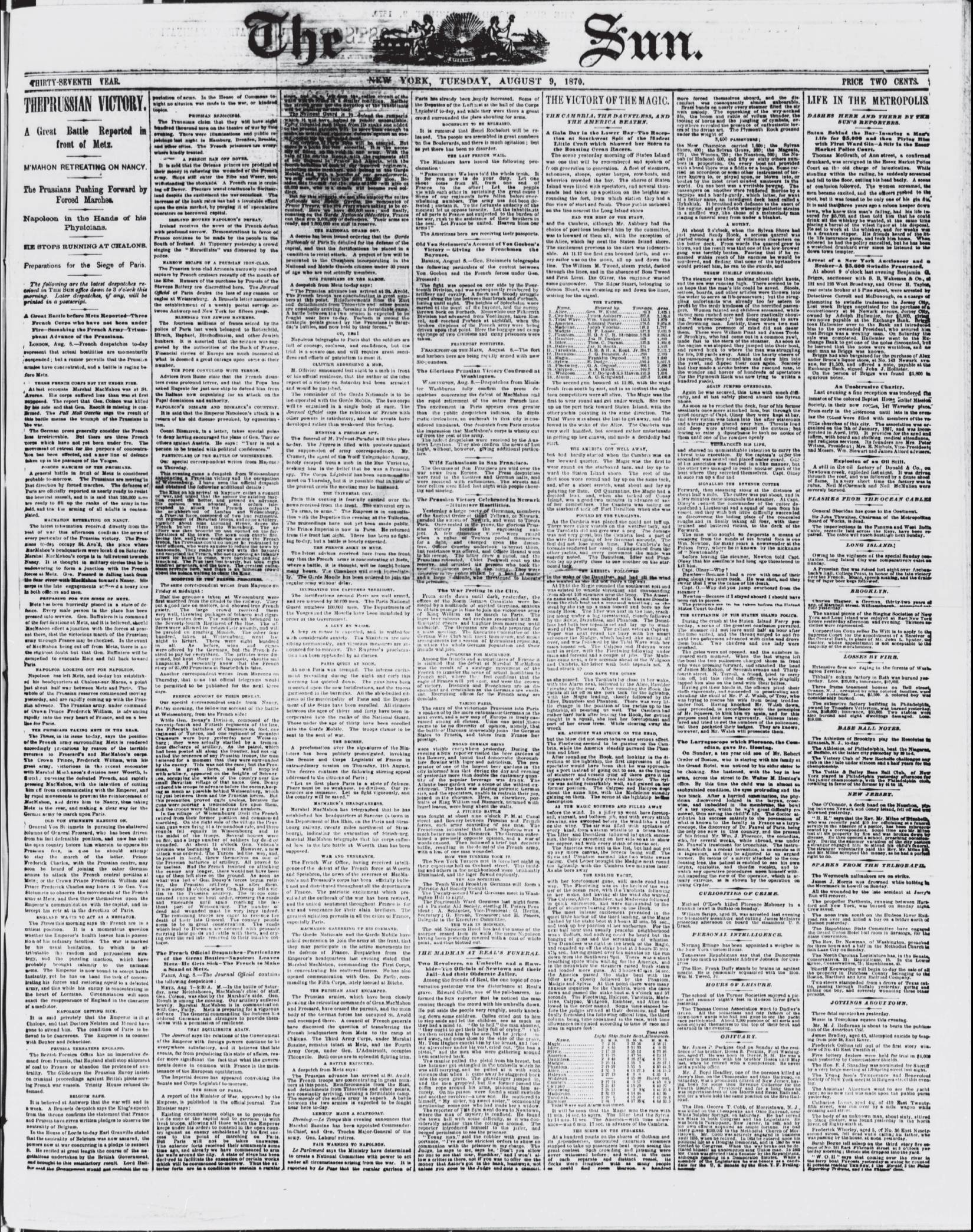 REF : 0 EDITION : 1870 DATE : 09 Aug 1870 COURSE : 0 DESCRIPTION SITE : THE VICTORY OF THE MAGICTHE CAMBRIA, THE DAUNTLESS AND THE AMERICA BEATEN.A Gala day in the Lower Bay – The reception at Southwest Spit of the modest little craft which showed her stern to the best ocean racers. NOTES AMERICA-SCOOP :LICENCE : Public domain |