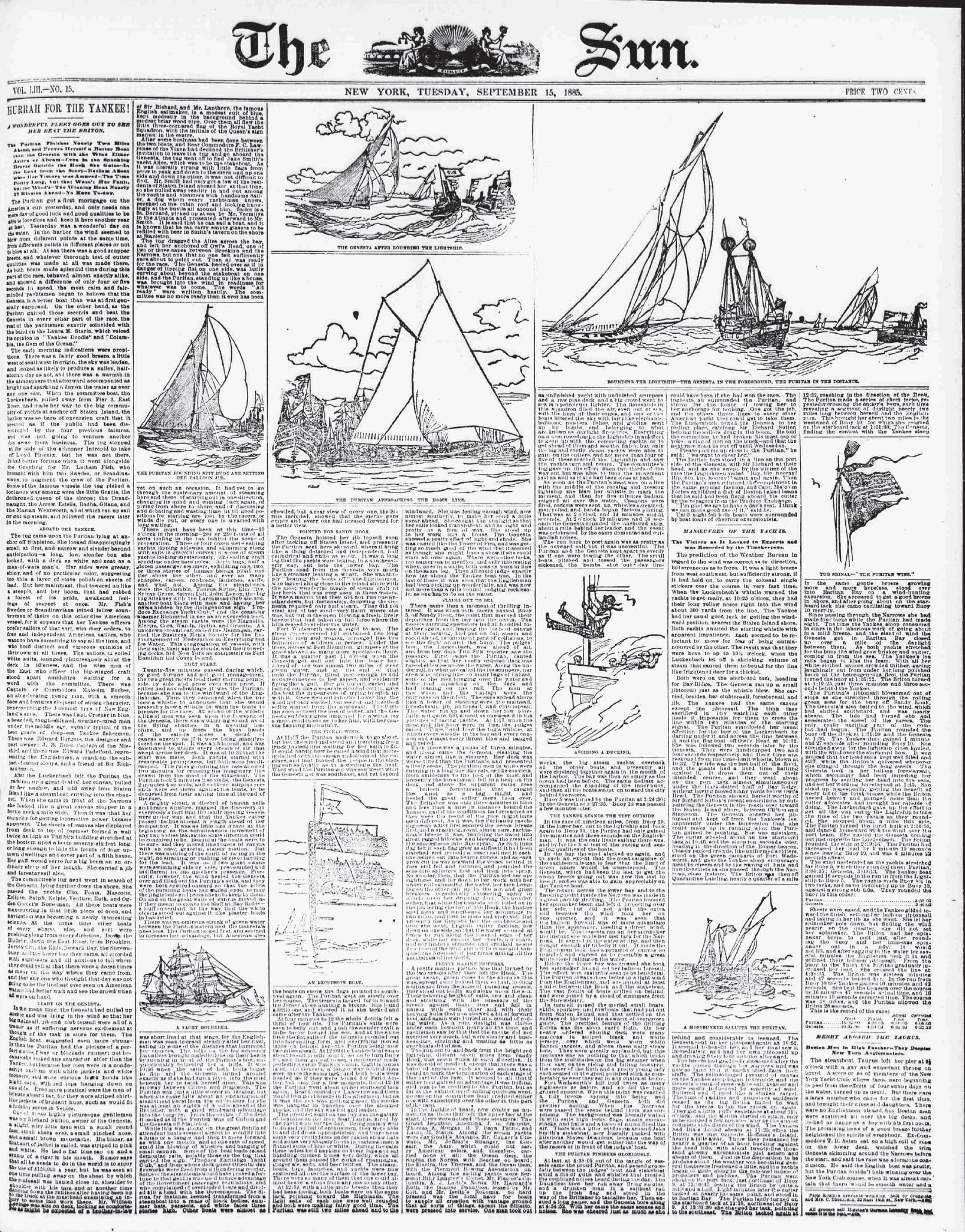 HURRAH FOR THE YANKEE ! - A WONDERFUL FLEET GO OUT TO SEE HER BEAT THE BRITON