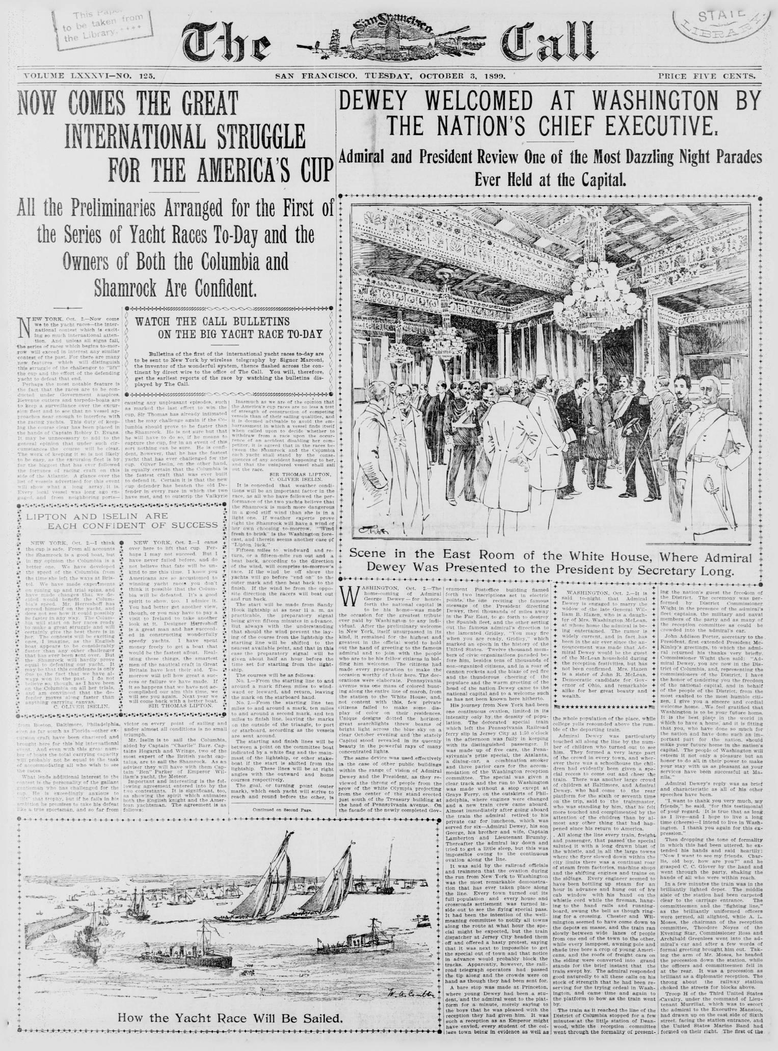 REF : 0 EDITION : 1899 DATE : 03 Oct 1899 COURSE : 0 DESCRIPTION SITE : NOTES AMERICA-SCOOP : FIRST YACHT RACE FOR NEITHER BOAT; Shamrock and Columbia do not Finish in the Time Limit. THE RESULT INDECISIVE Challenger Handled in an Admirable Manner by Capt. Hogarth. CRITICISM FOR BARR Yachtsmen Say He Ran the Defender Like an Amateur -- Irish Boat Beaten by 2 Minutes and 44 Seconds on the Outward Leg.LICENCE :Public domain |