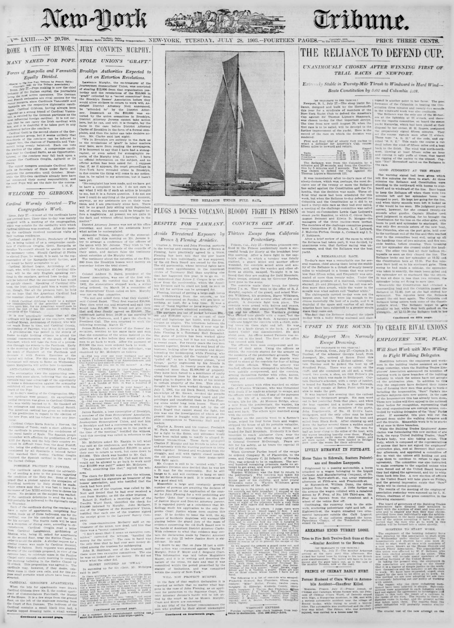 Document No 2614: THE RELIANCE TO DEFEND CUP - UNANIMOUSLY CHOSEN AFTER WINNING FIRST OF TRIAL RACES AT NEWPORT | |||||||||||||||