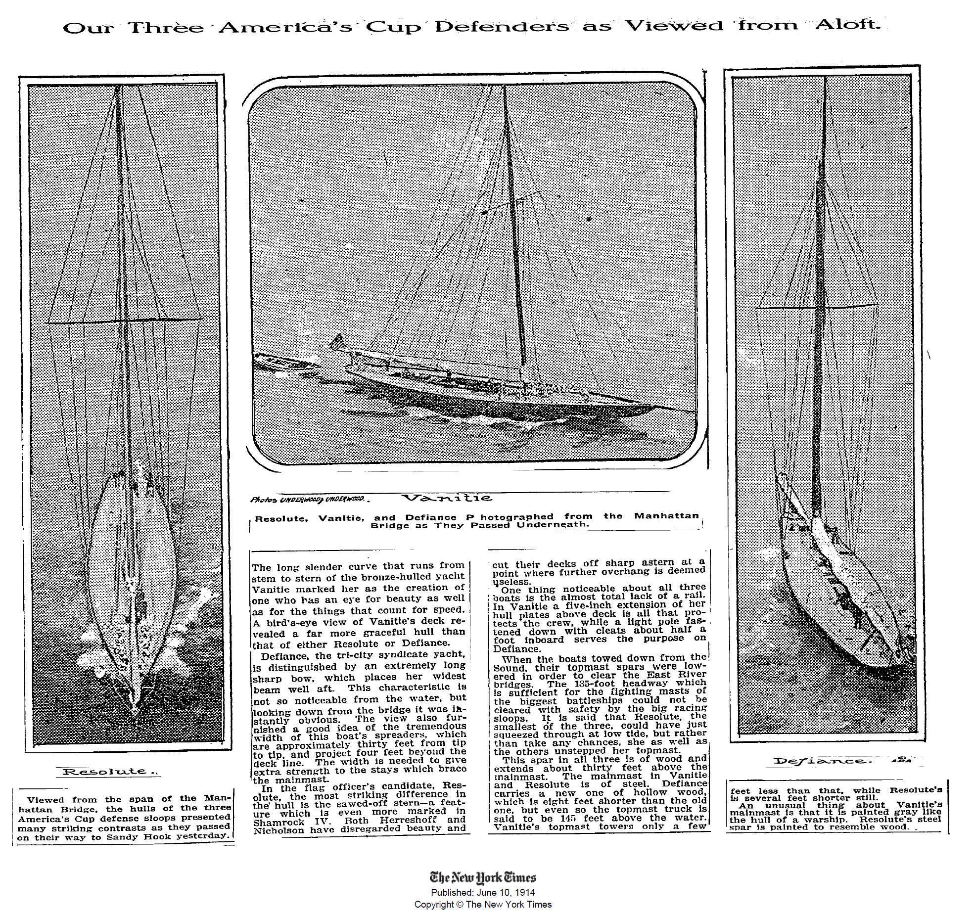 OUR THREE AMERICA'S CUP DEFENDERS AS VIEWED FROM ALOFT