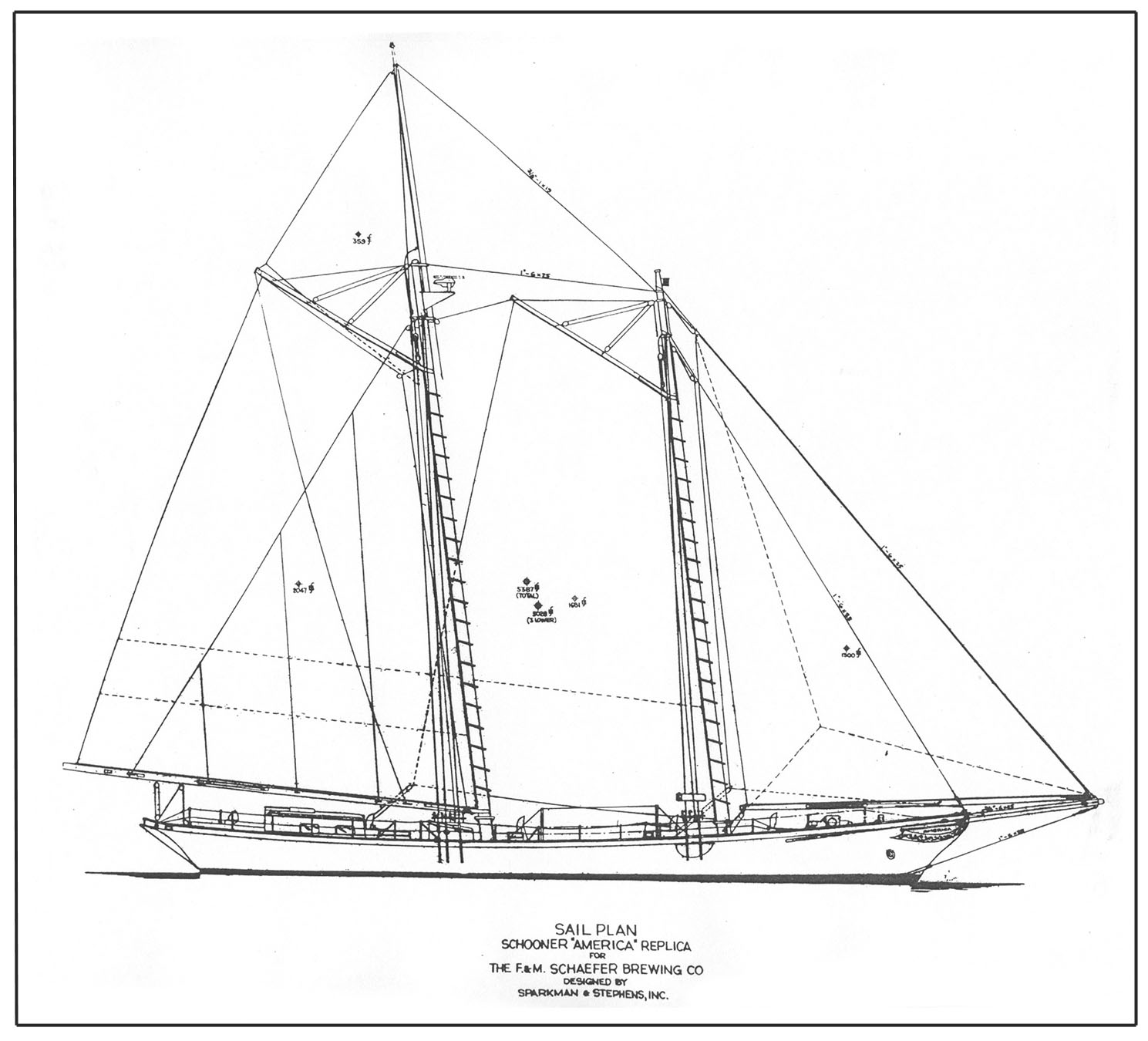 | Document No 2849: SCHOONER AMERICA - DESIGN 1897 - Sail Plan | |||||||||||||||