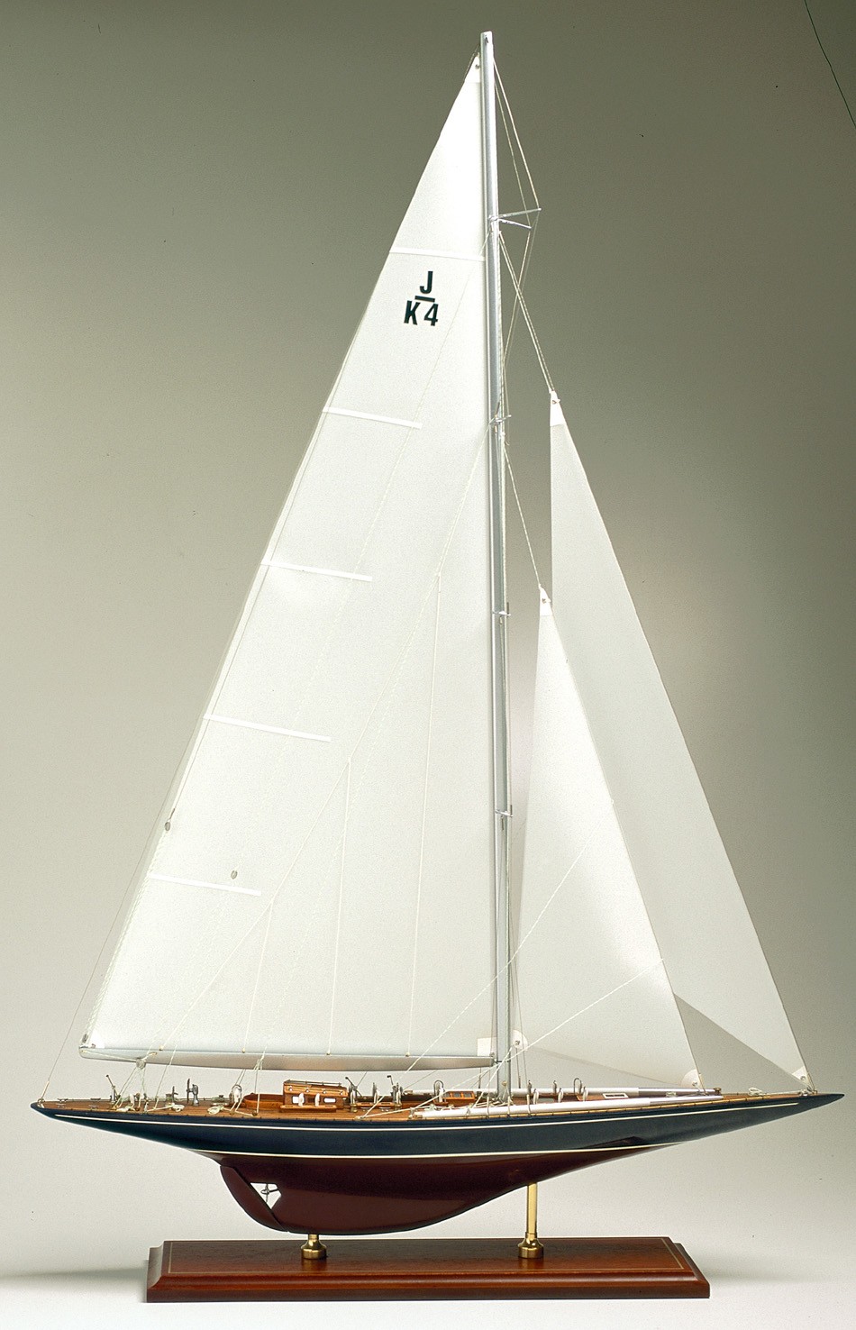 REF : 0 EDITION : 1934 DATE : COURSE : 0 DESCRIPTION SITE : 60 cm L x 85 cm Hgh Endeavour: the Legend. Plank on bulkhead construction, we only build small production batch of 10 units. Exclusive hand made construction, it has been built from the the best wood essences and innovative materials. This model of Endeavour combines the careful execution of every detail with the high quality of the materials and the craftsmanship. Deck fittings are amazing and very detailed. The model has been built according to the new Endeavour after its refit by Elizabeth Meyer in 1989. Model has blue topsides, white cove stripe , white boot stripe and dark red bottom paint. Also comes with varnished bottom upon request . Model comes with or without dacron sails and is ready to display. It is mounted with brass pedestals on a high quality hardwood display base with a gold trim. Felt lined underside will not scratch your furniture. NOTES AMERICA-SCOOP :LICENCE : Autorisation en cours |