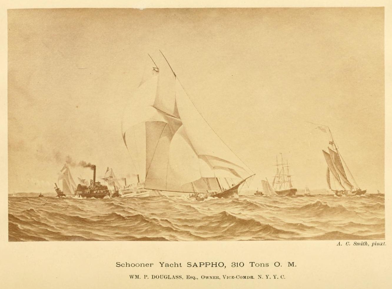 From the book: The America cup.A nautical poem descriptive of the five international races between the yacht Livonia ... and the yachts Columbia and Sappho by Hamilton Morton.
