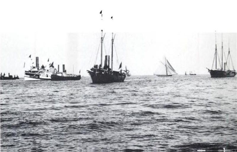 REF : 0 EDITION : 1885 DATE : 16 Sep 1885 COURSE : 2 DESCRIPTION SITE : Private yachts, excursion boats and tugs steamed out to watch the 1885 America's Cup Race. In the second race of the defense of the cup the Puritan is leading the Genesta in a turn around the buoy, which is framed between J. P. Morgan's famous yacht Corsair and another large yacht of the New York Yacht Club. NOTES AMERICA-SCOOP :From the book: Maritime New York in Nineteenth-century Photographs Autorisation en cours |
