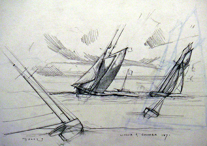 | Document No 3889: LIVONIA vs. COLUMBIA, America's Cup, 1871. (Pencil Study) | |||||||||||||||