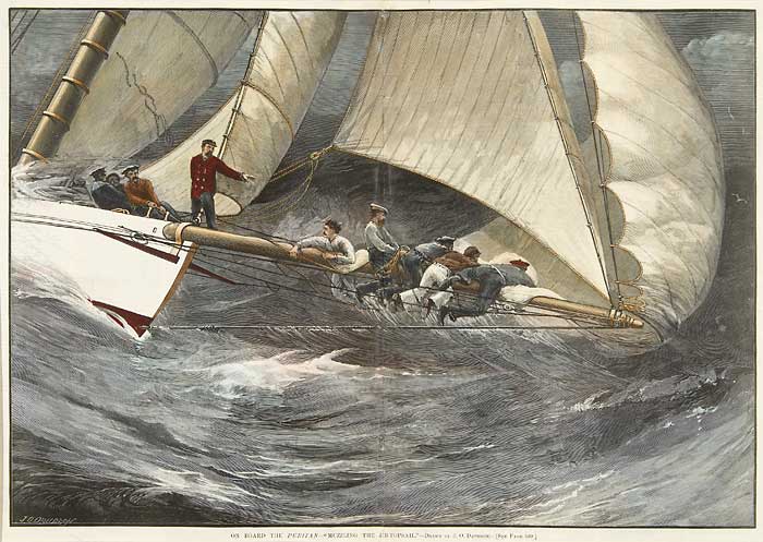 | Document No 3894: ON BOARD THE PURITAN - "MUZZLING THE JIB-TOPSAIL." | |||||||||||||||||||||||||