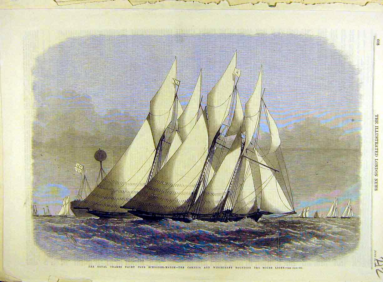 REF : 0 EDITION : 1870 DATE : 31 May 1869 COURSE : 0 DESCRIPTION SITE : 1869 Cambria Witchcraft Mouse-Light Yacht Schooner Old Print. Page Of Wood Engravings From The Illustrated London News, Size Is Aprox 15.5 X 11 Inches Full Page NOTES AMERICA-SCOOP :LICENCE : Public domain |