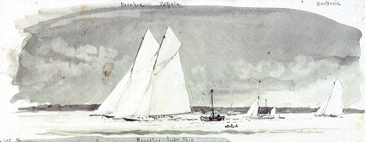 Yacht race, showing Navahoe, Valkyrie and Britannia