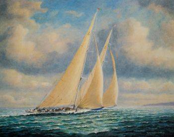 REF : 0 EDITION : 1934 DATE : 1935 COURSE : 0 DESCRIPTION SITE : "Endeavour" shown here racing "Yankee" in the Solent in 1935, was designed by Mr Charles Nicholson for her owner Mr Thomas Sopwith. She was launched in 1934 and that same year she challenged "Rainbow" for the America's cup. Many said she was unlucky not to have won. During the 1935 racing season she set an impressive record, winning the King's Cup. A background story is included in the price. LICENCE : Autorisation en cours |