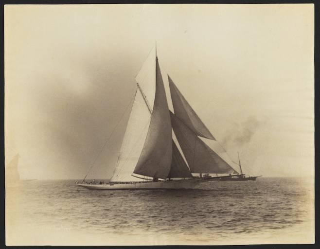 REF : 0 EDITION : 1887 DATE : 02 Aug 1895 COURSE : 0 DESCRIPTION SITE : Goelet Cup, Newport; N. L. Stebbins took photos from the Amadis (Boston Globe, Aug. 3, 1895, p. 1-2). Volunteer won the slop class (after Defender had been disabled by a broken gaff); Emerald the schooner class.Volunteer was changed back to sloop rig in 1895 to serve as a trial horse for Vigilant and Defender NOTES AMERICA-SCOOP :DEFENDER BREAKS DOWN; Snapped a Hollow Gaff in Goelet Cup Races. VIGILANT THEN SECURED THE PRIZE Defender Was Well Ahead When the Accident Happened and Would Have Won. JUBILEE BEATEN BY THE VIGILANT The Cup Defender Again Shows Her Superiority.NEWPORT, R.I., Aug. 2. -- George J. Gould has won a Goelet cup with his yacht Vigilant. She was in luck to-day, and won the much-coveted trophy through the Defender's breaking down. The Defender had led all around the course, and was only five miles from the finish when her gaff snapped just about the middle of the spar, and she was put out of the race. LICENCE :Public domain |