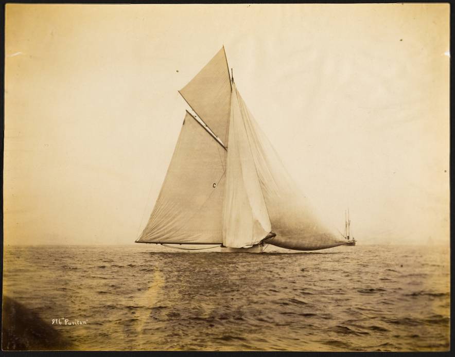 REF : 0 EDITION : 1885 DATE : 15 Jun 1886 COURSE : 0 DESCRIPTION SITE : Puritan was a wooden centerboard sloop designed by E. Burgess and built by Lawley in 1885 as a successful America's Cup defender. LOA 94ft, LWL 81-1.5ft. Beam 22.7ft. Atlantic Yacht Club regatta. Puritan was not timed after drifting over the finish line on the wrong side of the judge's boat. NOTES AMERICA-SCOOP :LICENCE : Public domain |