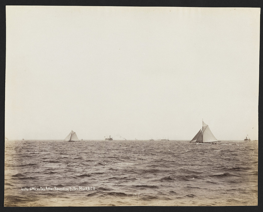 REF : 0 EDITION : 1893 DATE : 13 Oct 1893 - 14:40 COURSE : 5 DESCRIPTION SITE : Third America's Cup race between Vigilant and Valkyrie, 15 miles to windward and return, starting from Sandy Hook Lightship, Vigilant won. NOTES AMERICA-SCOOP :LICENCE : Public domain |