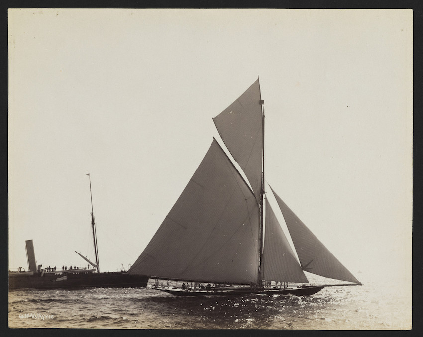 REF : 0 EDITION : 1893 DATE : 07 Oct 1893 - 15:10 COURSE : 2 DESCRIPTION SITE : First America's Cup race between Vigilant and Valkyrie, 15 miles to windward and return, starting from Sandy Hook Lightship, Vigilant won. NOTES AMERICA-SCOOP :LICENCE : Public domain |