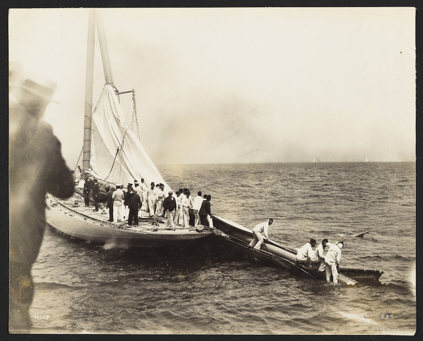 Document No 4337: Columbia with broken mast, crew retrieving | |||||||||||||||