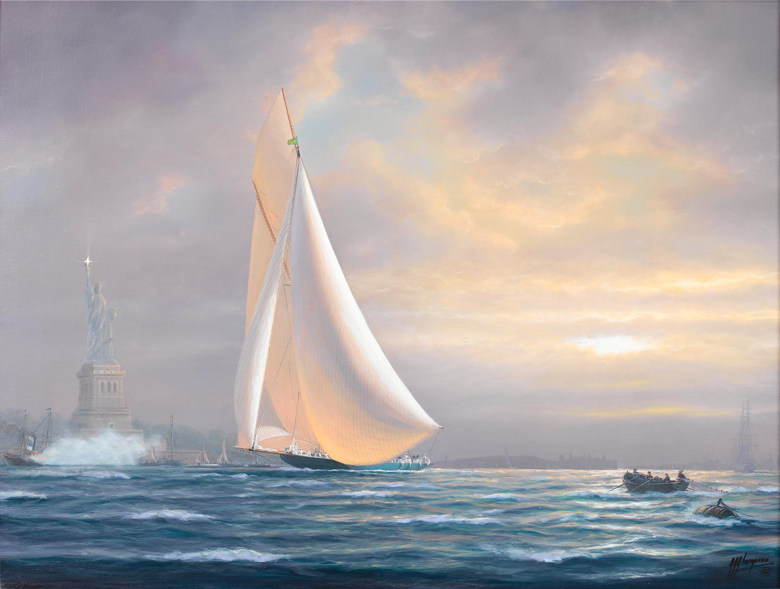 Document No 441: Sir Thomas Lipton's America's Cup challenger Shamrock (I) being saluted off the Statue of Liberty at dusk, 1899 | |||||||||||||||||||||||||