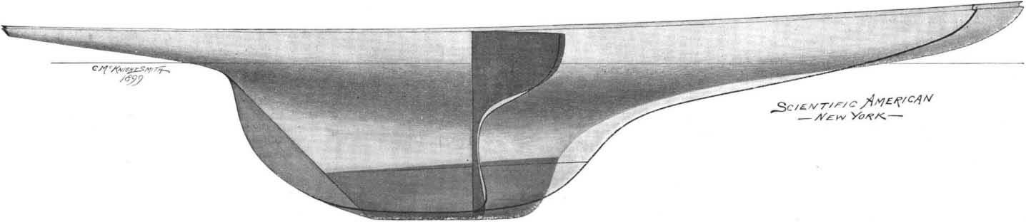 Heavy line shows old Defender; shaded hull and section show new Defender
