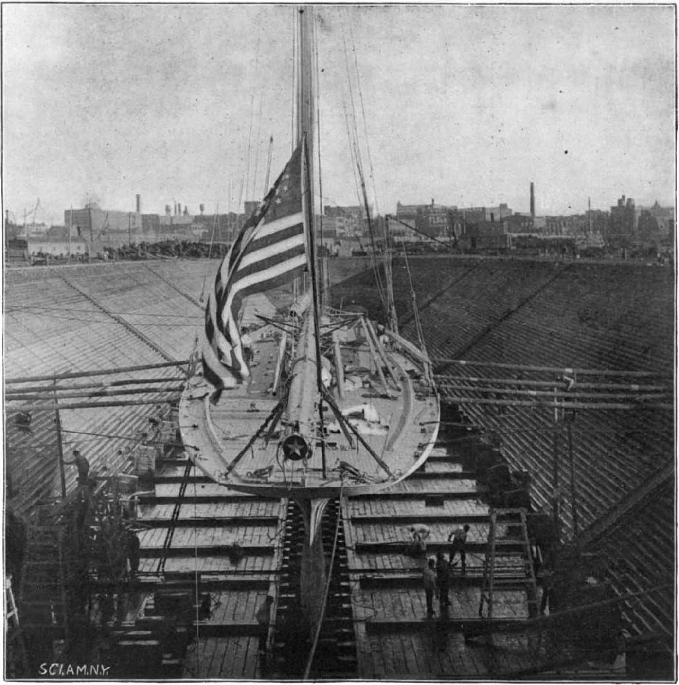 DECK VIEW OF "COLUMBIA," LOOKING FORWARD.