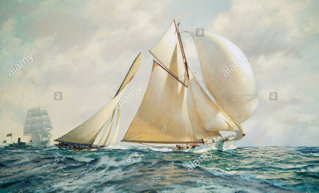 REF : 0 EDITION : 1887 DATE : 30 Sep 1887 COURSE : 2 DESCRIPTION SITE : Volunteer rounds the windward mark ahead of Thistle during the second America's Cup race of 1887. LICENCE : Autorisation de l'auteur acceptée le 28/03/2019 |