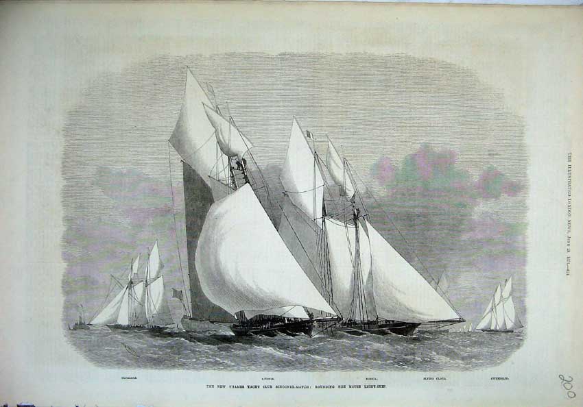 Document No 4850: Print 1871 Thames Yacht Club Schooner Ships Egeria Livonia | ||||||||||||||||||||