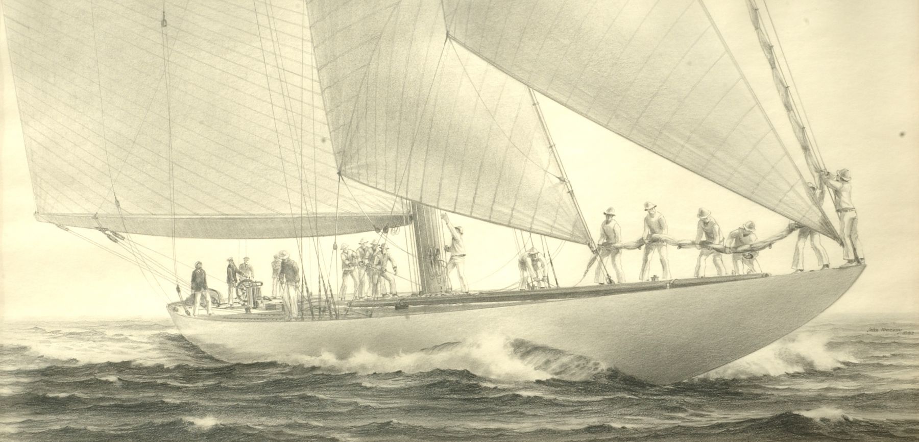 sketch of the yacht 'Enterprise', signed center right: 'John Mecray', and