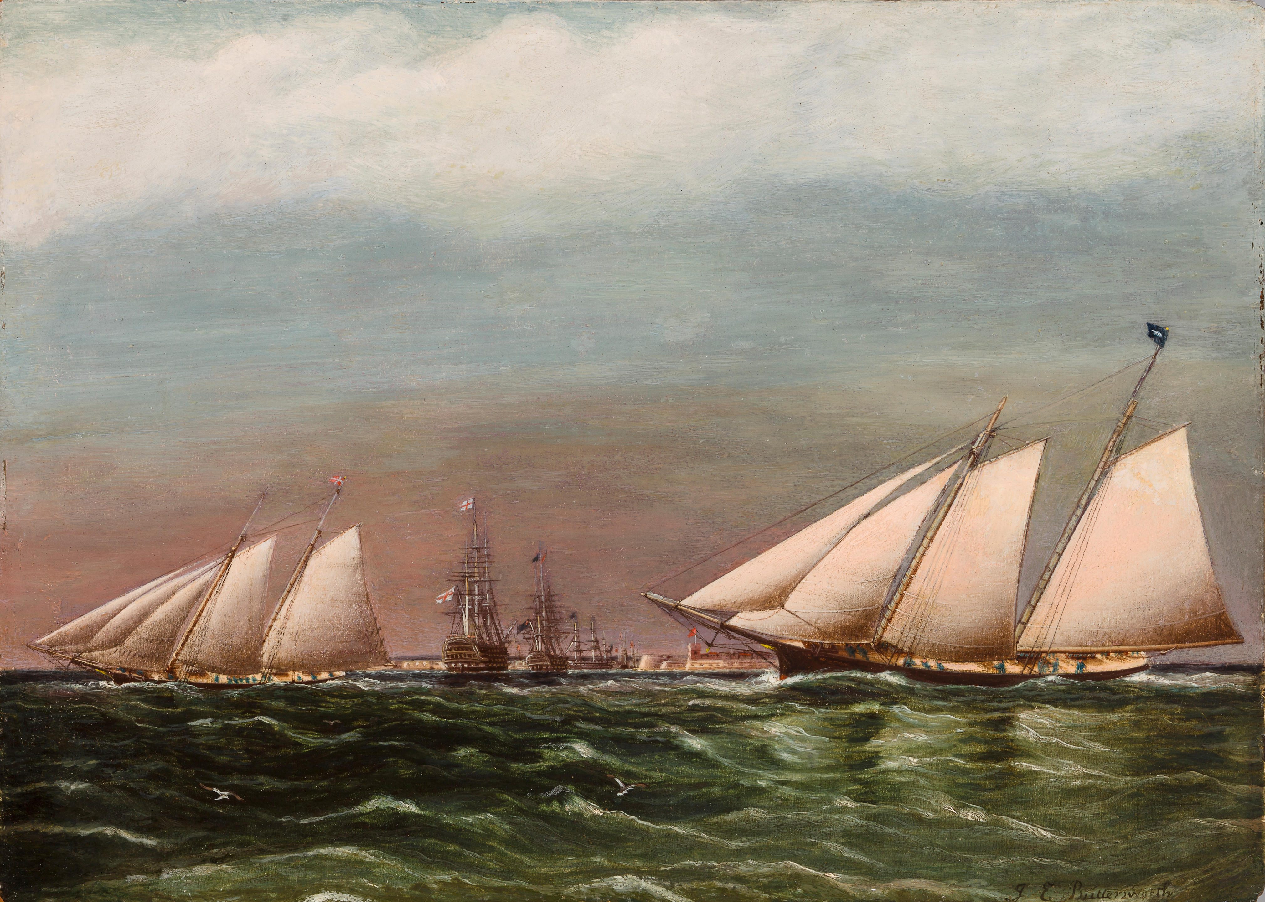 On arrival in England, John Cox Stevens placed advertisements challenging all comers to race for a wager of £10,000 but received no takers. Eventually, the engineer, Robert Stephenson agreed to race against America with his 100-ton iron schooner Titania, for a £100 wager. America easily won. Anticipating the likely arrival of the American yacht, The Royal Yacht Squadron made their annual race around the Isle of Wight, an open event. America won, finishing 8 minutes ahead of the much smaller Aurora in a dying breeze.