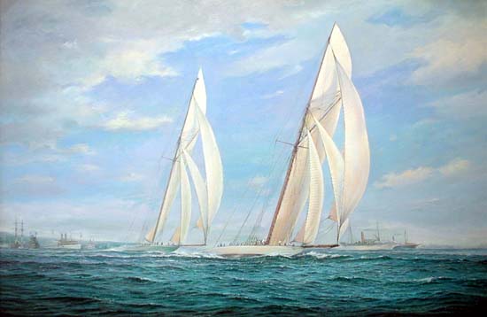 REF : 0 EDITION : 1901 DATE : 04 Oct 1901 - 11:55 COURSE : 5 DESCRIPTION SITE : 24" x 36" Oil on Canvas NOTES AMERICA-SCOOP :L'étrave ressemble plus à celle de Shamrock que de Shamrock II LICENCE :Autorisation en cours |