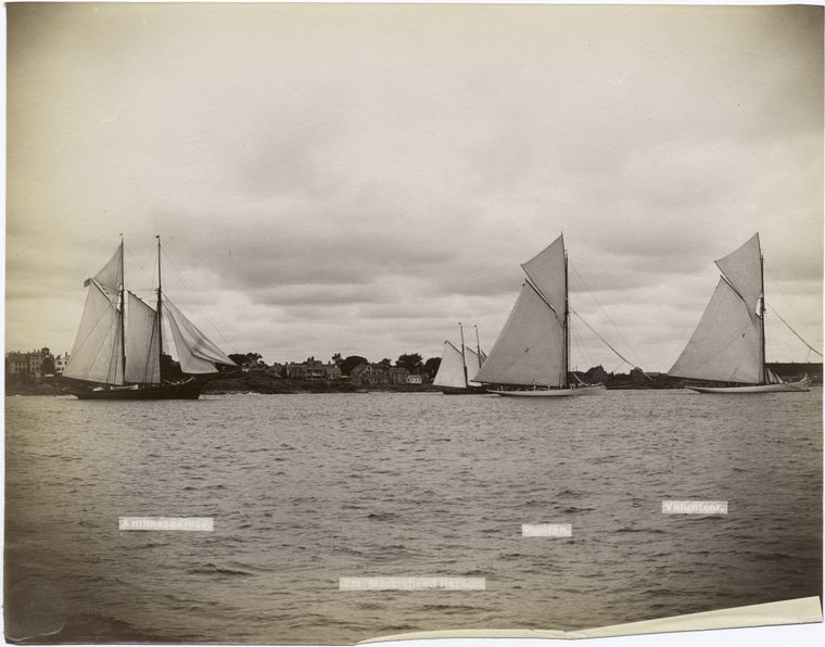 Ambassador, Puritan, Volunteer, Marblehead Harbor. ([ca. 1892])