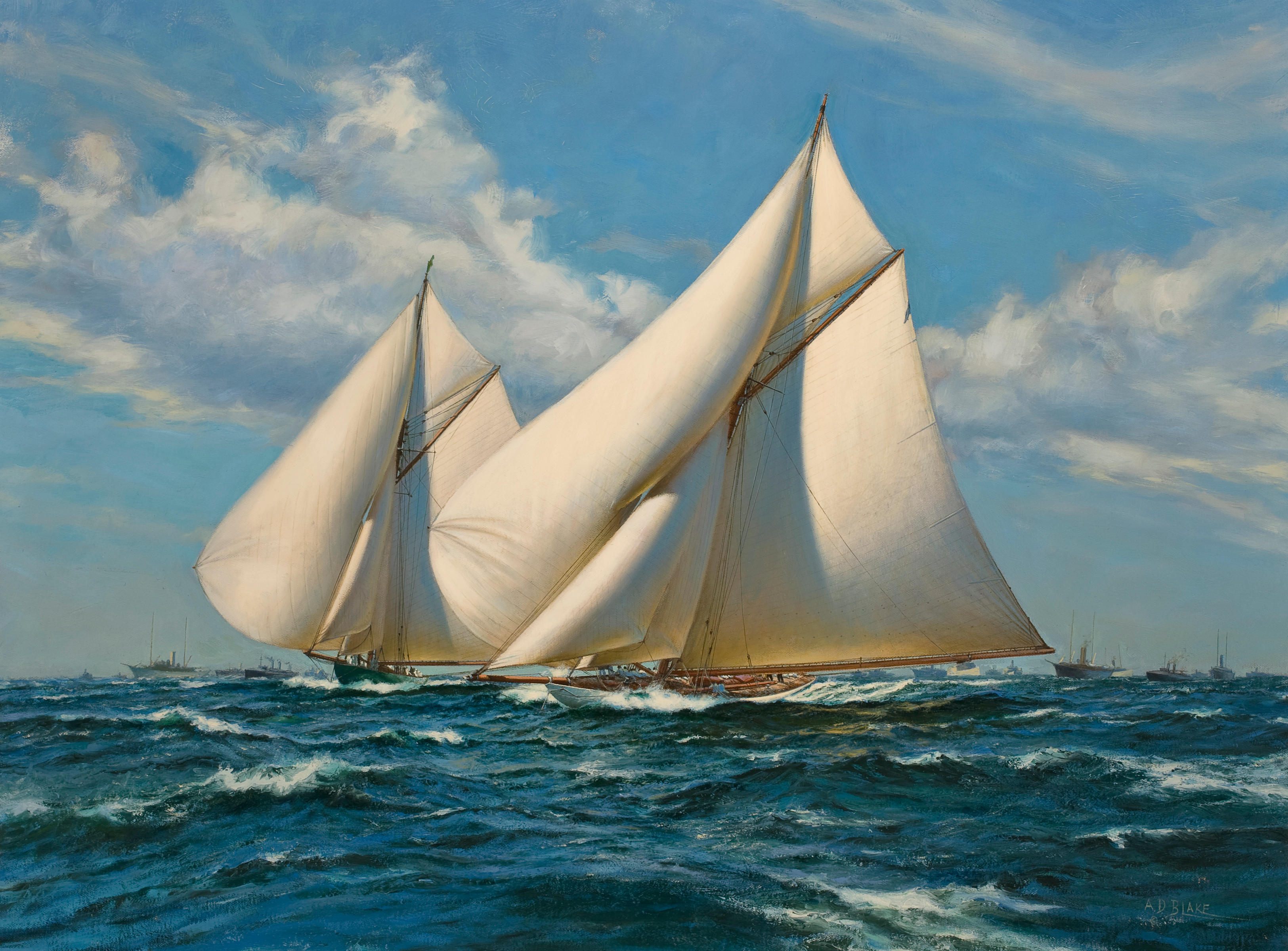 America's Cup, 1899, Race 3. " Columbia leads Shamrock I " oil