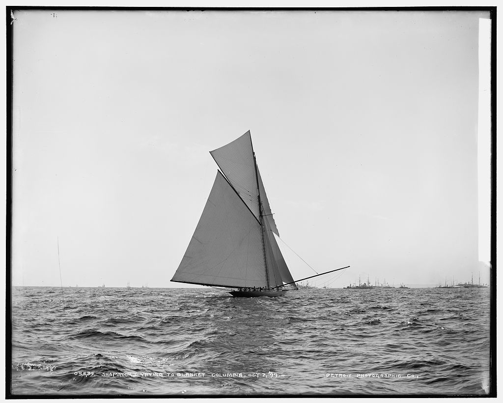 REF : 5539 EDITION : 1899 DATE : COURSE : 3 DESCRIPTION SITE : "26" on negative. Detroit Publishing Co. no. 05539. NOTES AMERICA-SCOOP :YACHT RACE ENDED IN ANOTHER FLUKE; Wind Died Out and Left Rivals Five Miles from the Finish Line. COLUMBIA 100 YARDS AHEADNEWPORT, R.I., Oct. 7. -- The third attempt to sail the opening race of the series for the America's Cup was made yesterday, and again there was a failure for want of wind. All kinds of experts came like young Lochinvar out of the West and prophesied gales, squalls, hurricanes, and divers winds of high and low degree for yesterday, but alas! the only things which really blew hard were the experts themselves. LICENCE :Public domain |