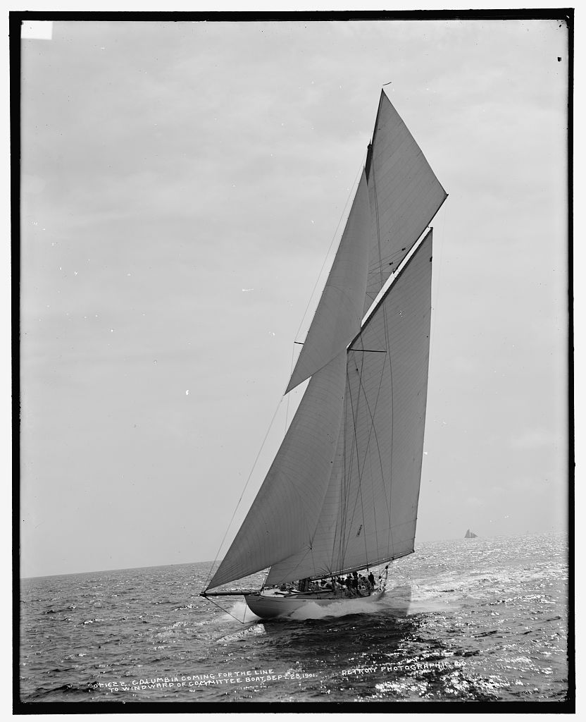 Document No 968: Columbia coming for the line to windward of committee boat. | |||||||||||||||