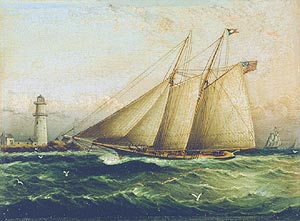 REF : 0 EDITION : 1871 DATE : 1871 COURSE : 0 DESCRIPTION SITE : The keel yacht SAPPHO (121'x 27'4' x 12'9"; 310 tons) was modeled by William Townsend and built by C. & R. Poillon in 1867. Originally owned by E.A. Lawrence, she was altered in 1869 and passed to W.P. Douglas. In 1871 she defeated CAMBRIA and successfully defended the America's Cup. NOTES AMERICA-SCOOP :LICENCE : Public domain |